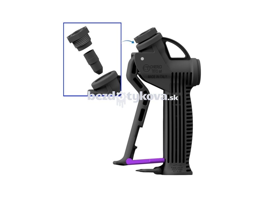 Pištoľ na dávkovanie chémie pri nízkom tlaku. Určená na dávkovanie rôznych druhov tekutých roztokov ako čistiace roztoky, dezinfekčné roztoky, dezinfekcia, parfumy, leštidlá na pneumatiky atď.. Produkt je dostupný v rôznych konfiguráciách, vďaka rôznym druhom trysiek na parfumy a čierne pneumatiky.